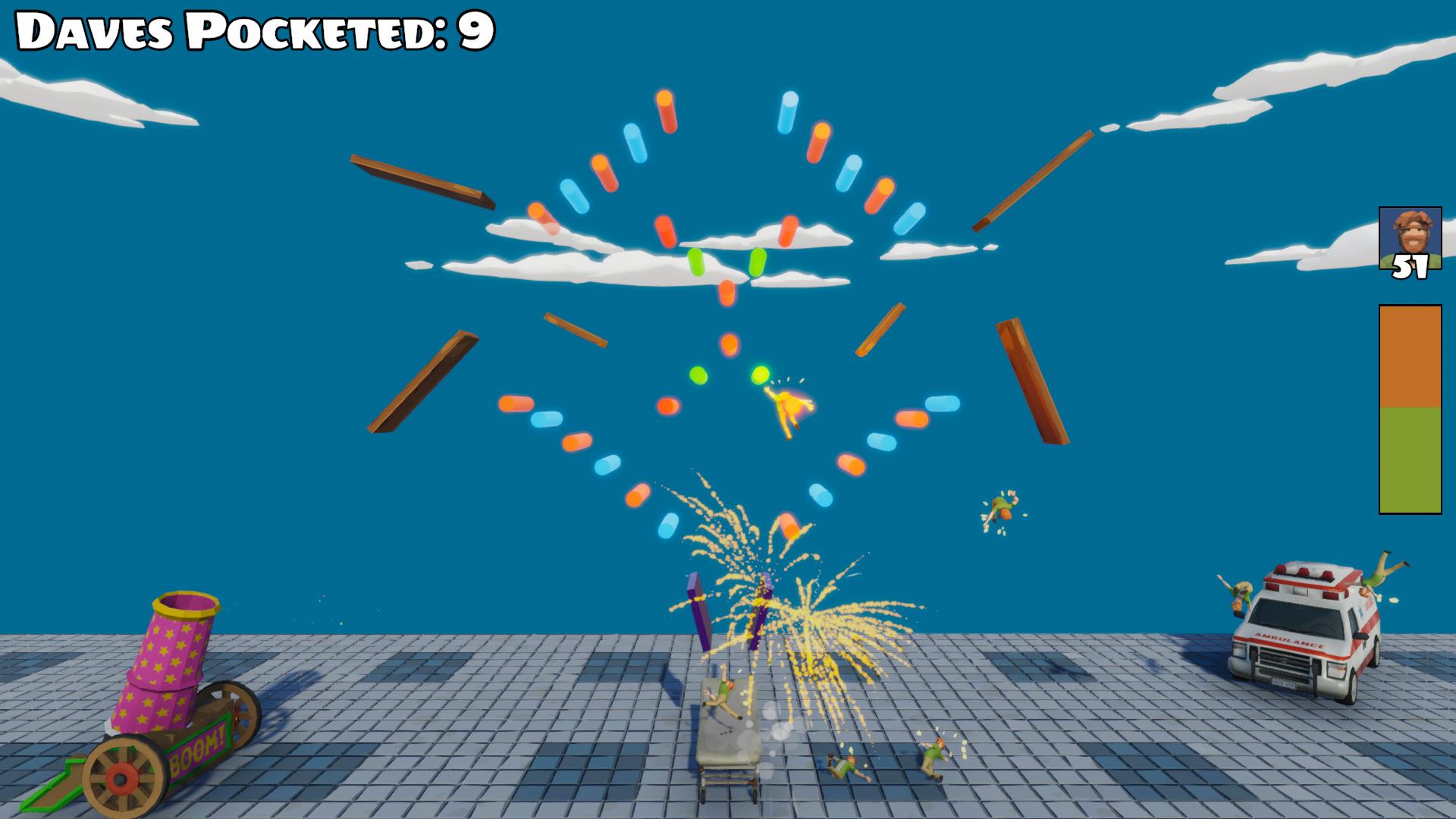 Catch as many Daves as you can in this Plinko Ragdoll sillyness. Watch out for each obstacle in his way. Move the Gurney under the Daves as they drop, but where will each Dave land...